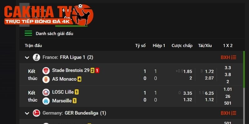 Qua bảng KQBD mới nhất trên Cakhia trực tiếp bóng đá, bạn có thể theo dõi tỷ số trực tuyến, các thống kê quan trọng cùng lịch thi đấu chỉ trong vài giây với độ chính xác cao.